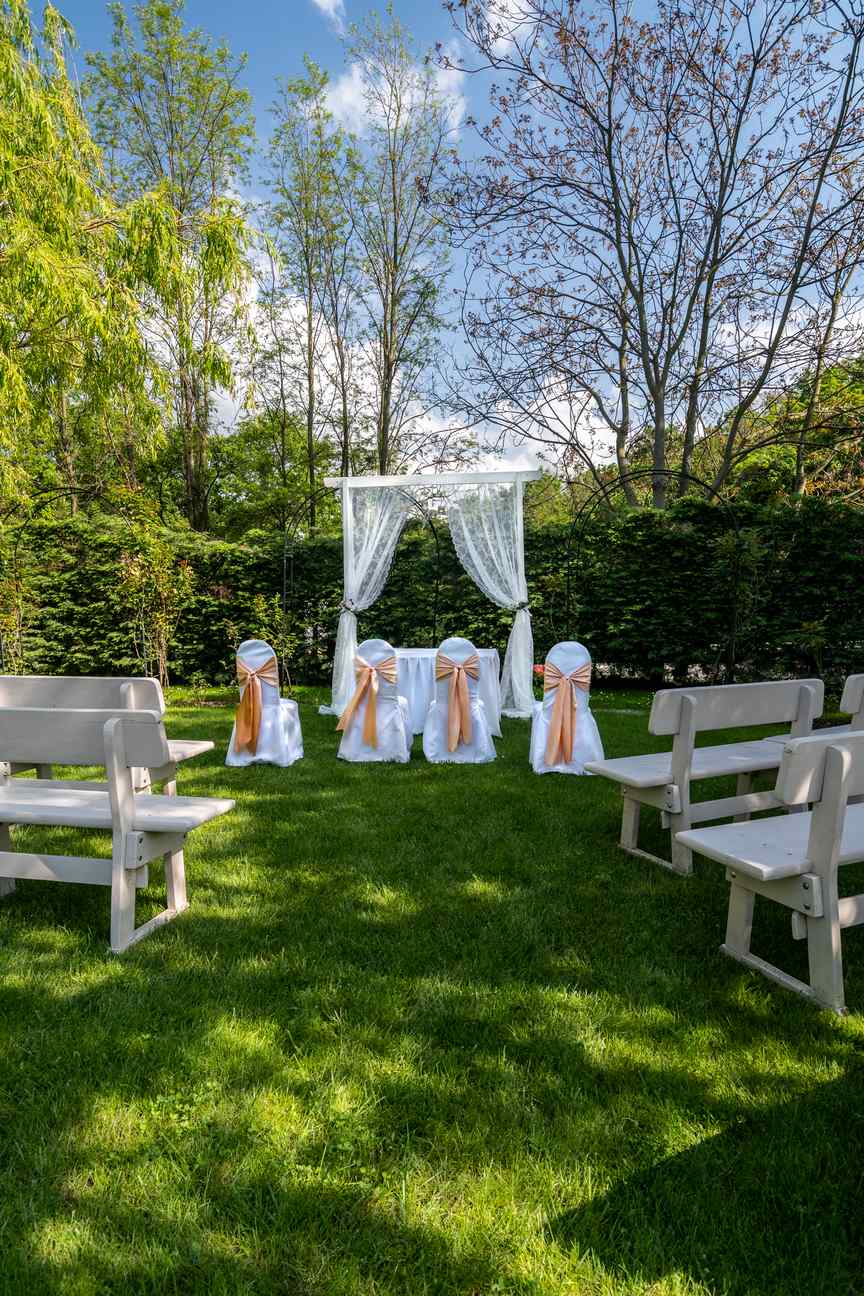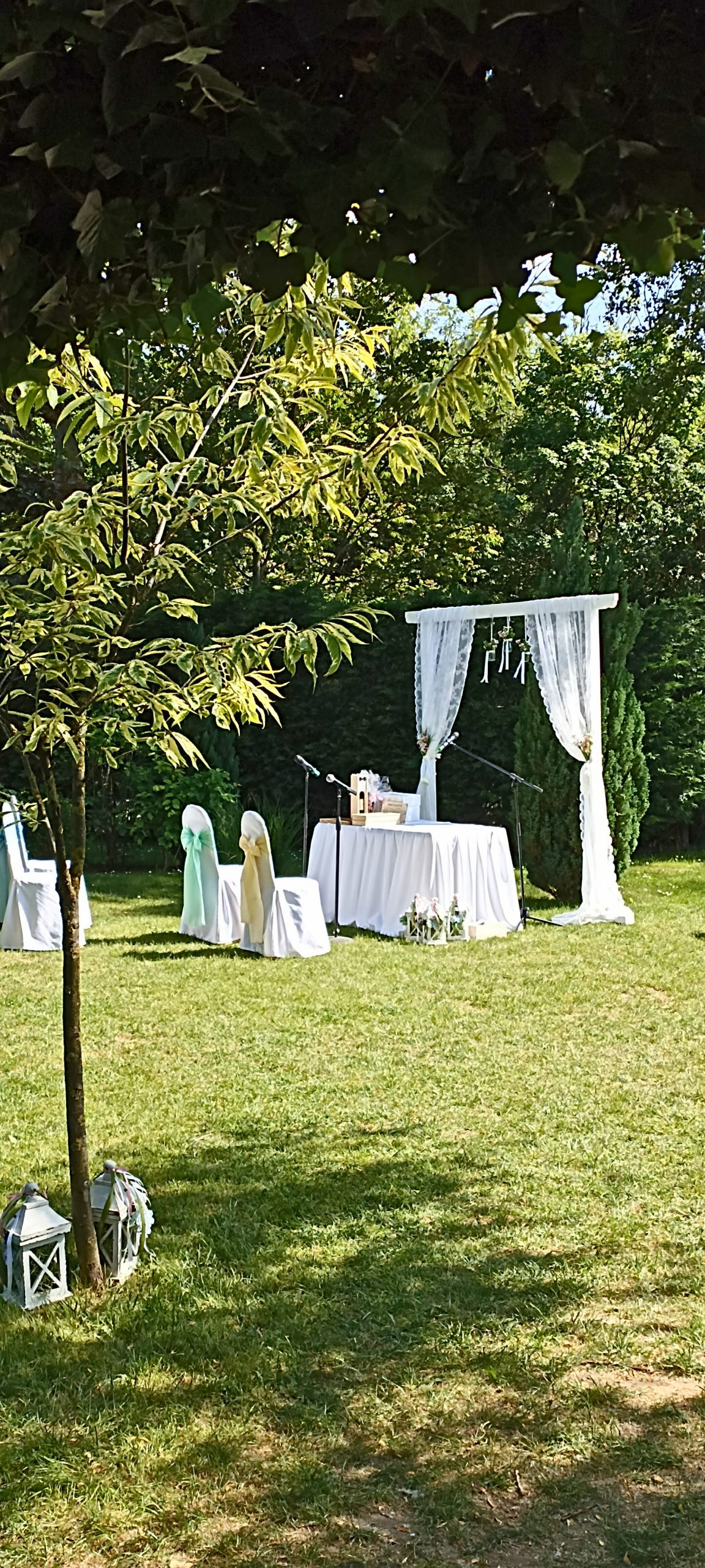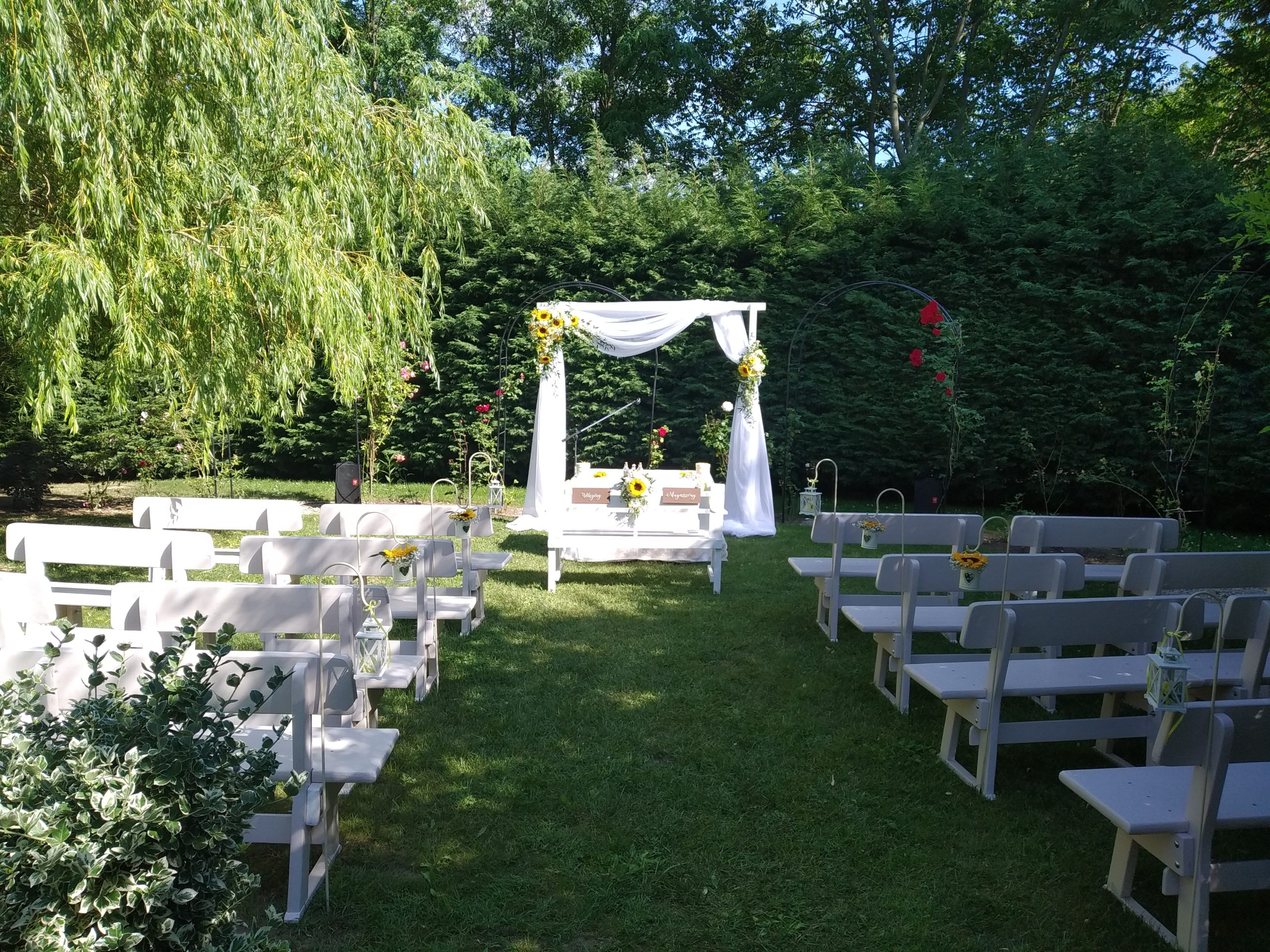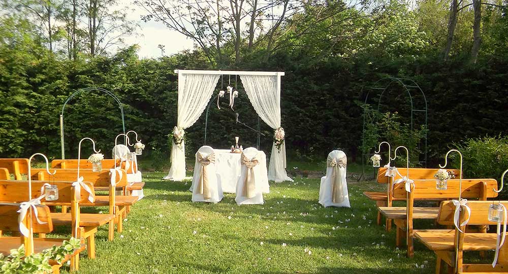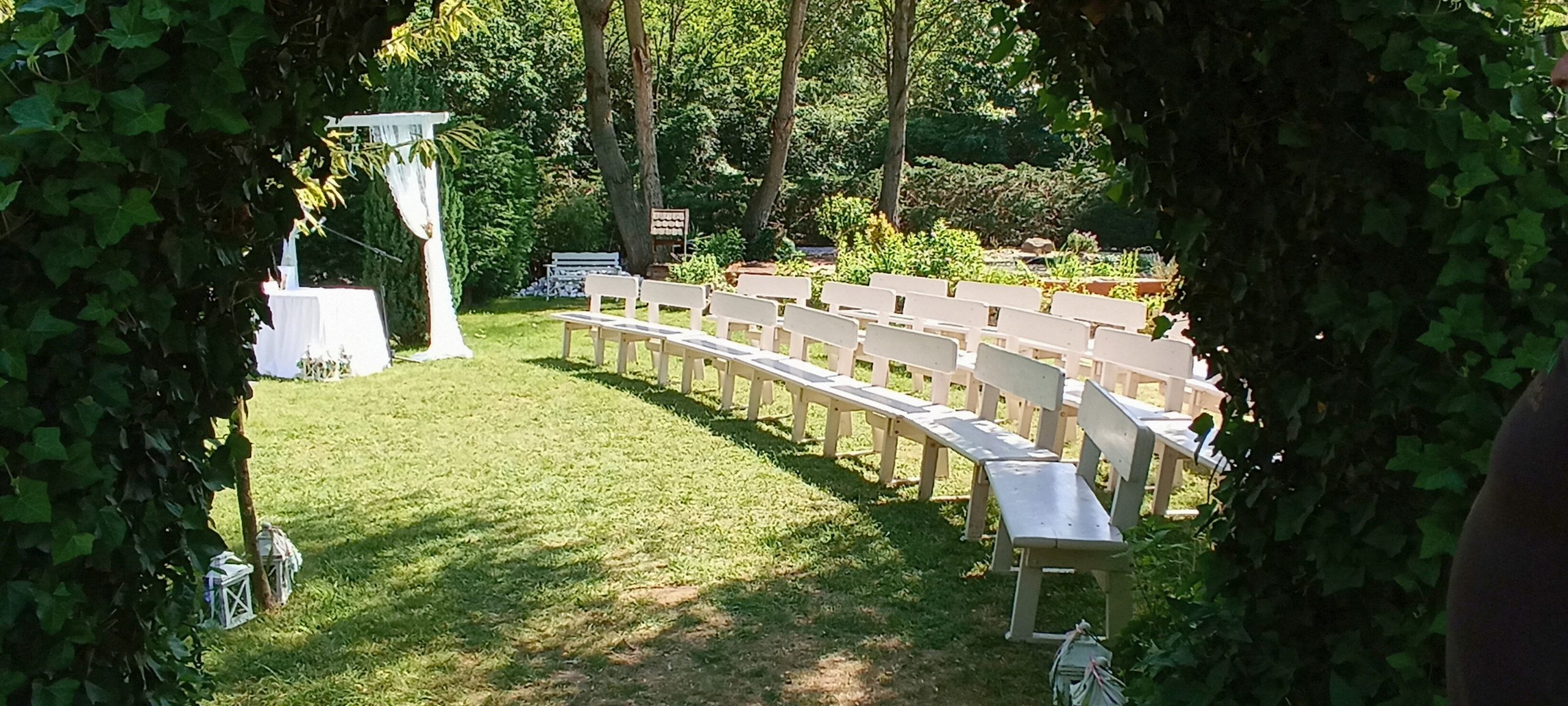 A panziónkban lehetőség van a polgári szertartás lebonyolítására is. A szertartáshoz biztosítjuk a kasírozott, ünnepi asztalt valamint 50 fő részére padot a szertartás helyszínén, mely panziónk kertje vagy rossz idő esetén a fedett terasz lehet. A kertben műanyag virágszirom, konfetti szórása, konfetti-ágyú használata nem engedélyezett.