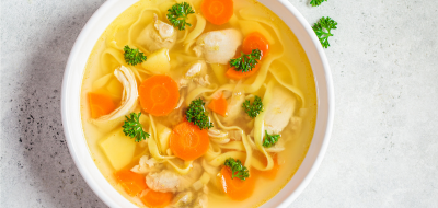 - Újházi tyúkhúsleves csigatésztával, benne főtt hússal és zöldséggel